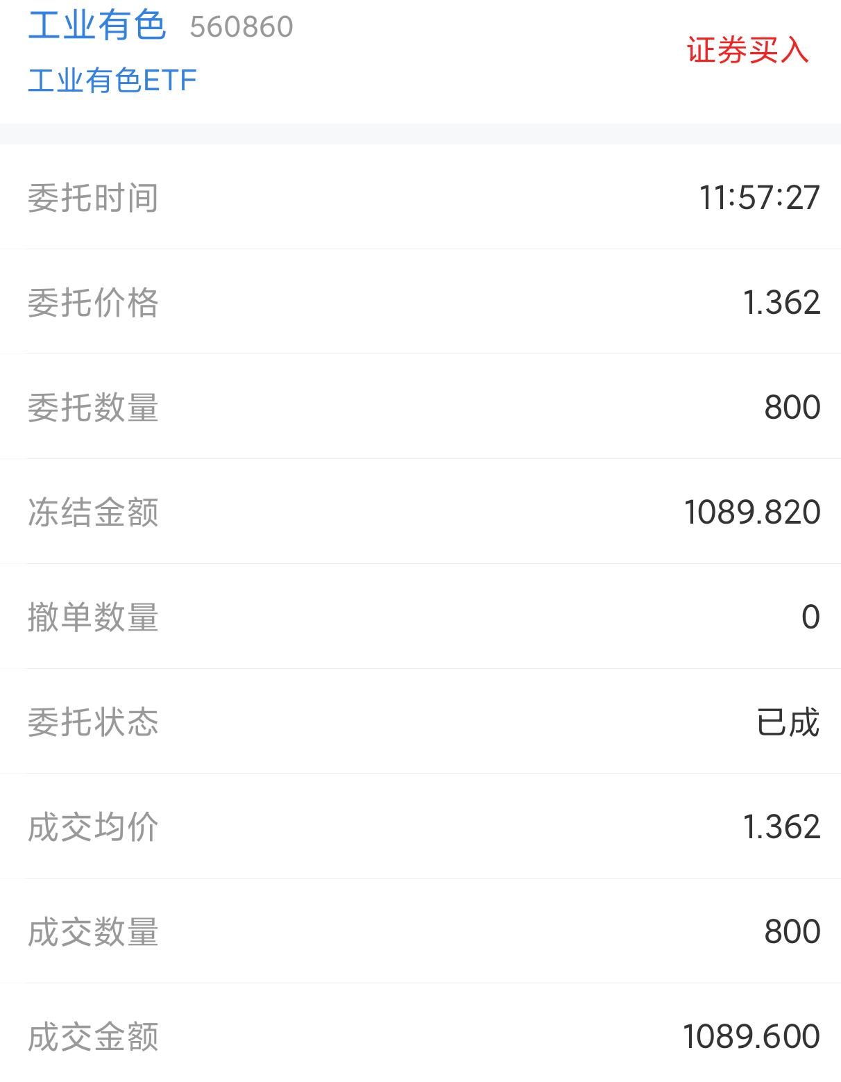 买进1000的万家的 $工业有色ETF(SH560860)$
