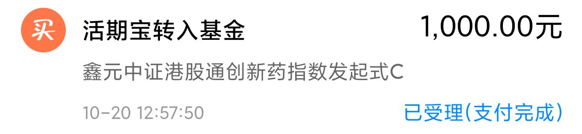 买进1000的 $鑫元中证港股通创新药指数发起式C(OTCFUND|024408)$