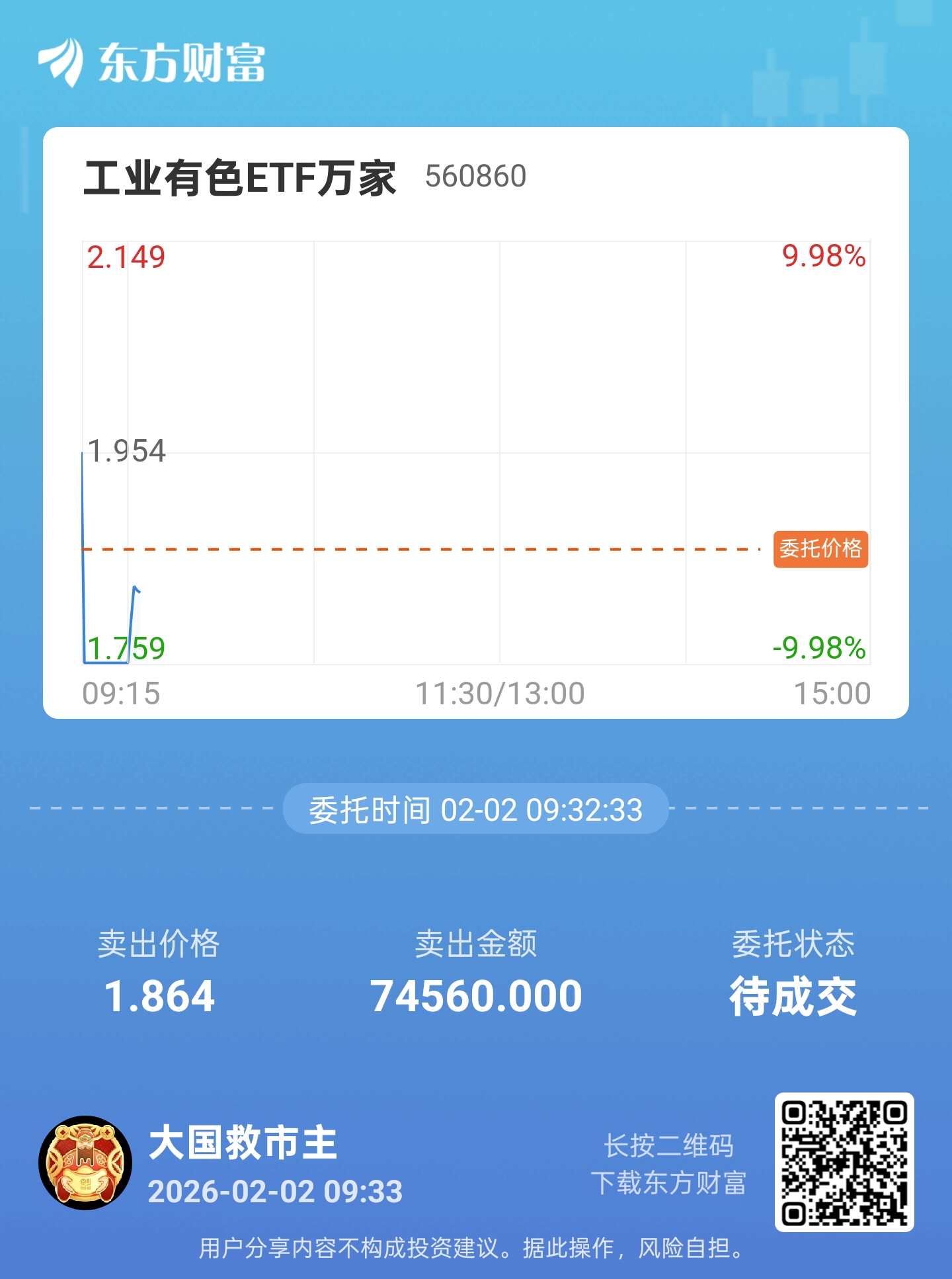 $工业有色ETF万家(SH560860)$