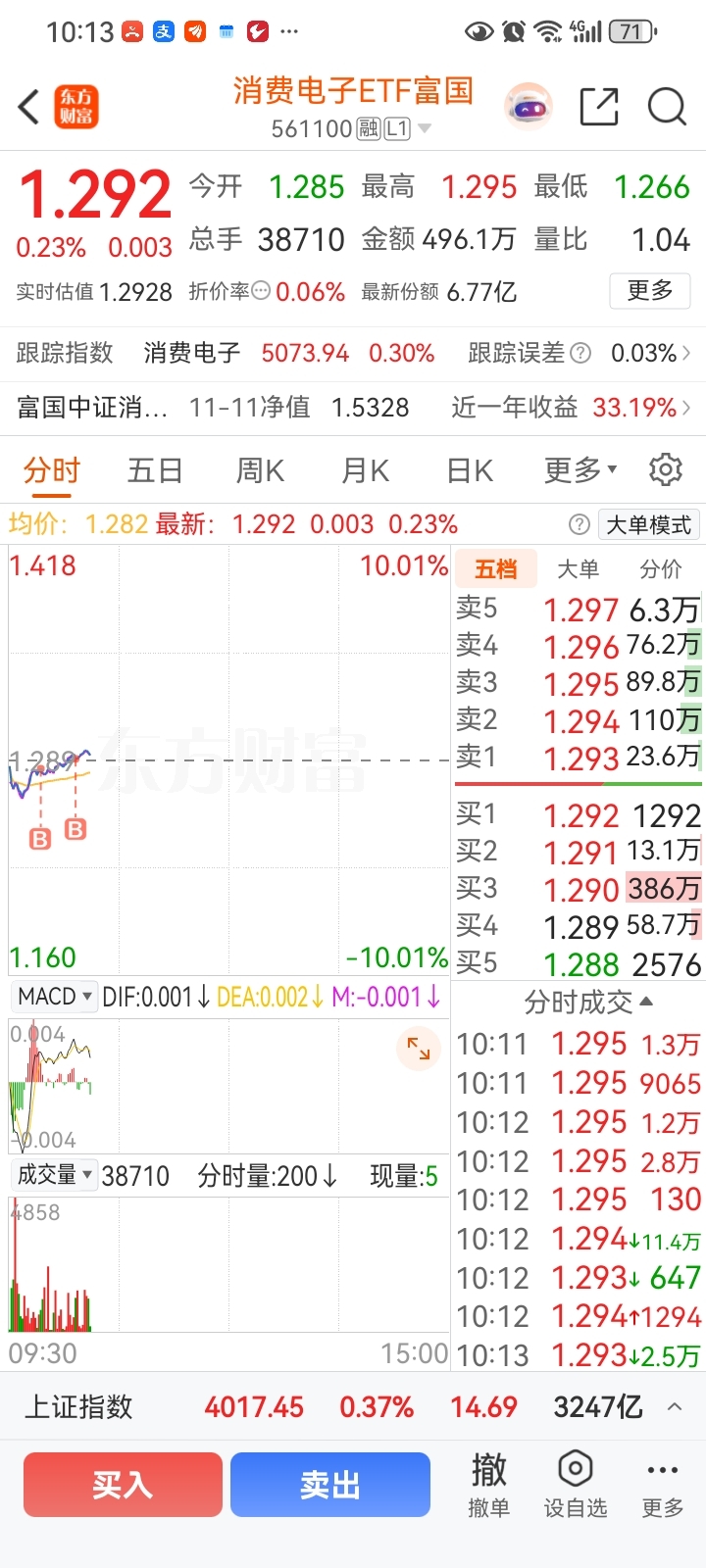 $消费电子ETF富国(SH561100)$ 感觉电子龙头调整的差不多了。今天增加了兵力。