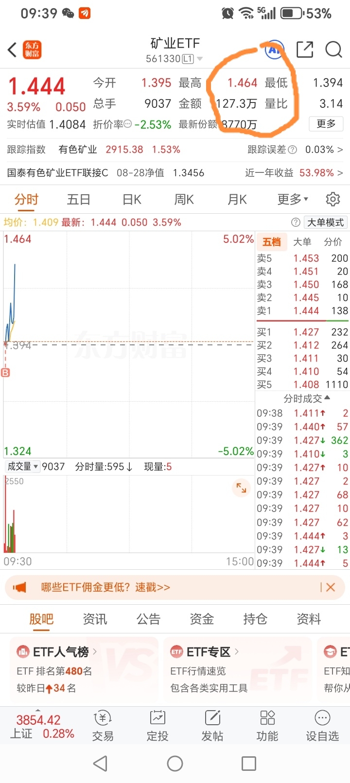 $矿业ETF(SH561330)$ 1.464买想涨停?