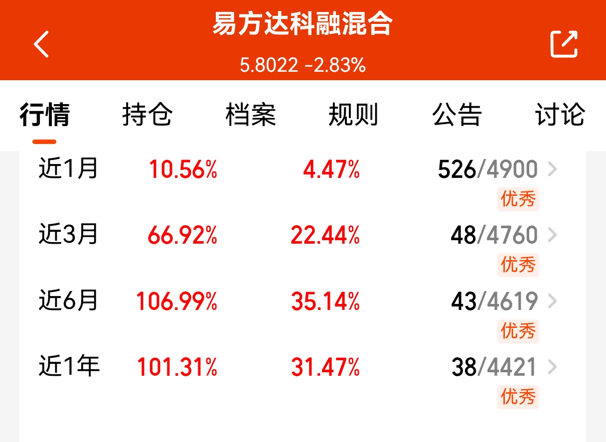 大国科技博弈背景下,半导体产业链自主可控逻辑加强,此外存储持续涨价、国内先进制程积极扩产、国产算力发展均带来制造端投资机会,科技这个方向不会错,不过单一板块风险也大,可以均衡配置,$易方达科融混合(OTCFUND|006533)$这种混合基持仓比较广,近一个月涨幅10.56%,近三个月涨幅66.92%,近六个月涨幅106.99%,表现突出。