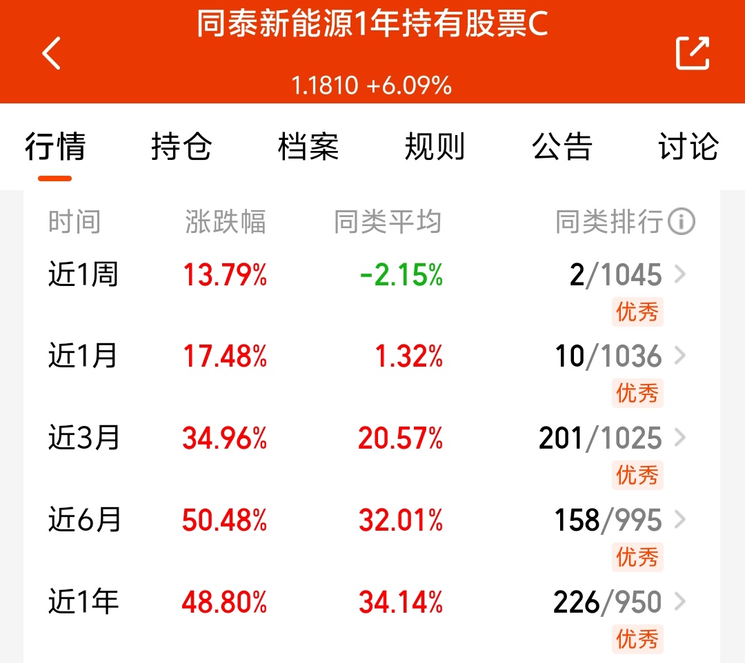 同泰新能源一年持有期近一周全市场第二,昨日大涨 6.09%,专注可控核聚变,各阶段排名优秀,有一年锁定期哦~