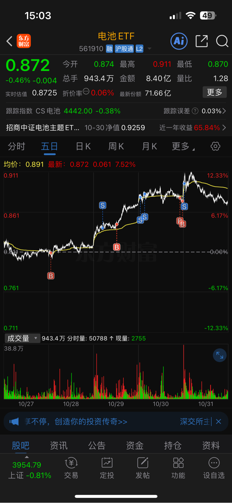 $电池ETF(SH561910)$ 本周MVP,有点恐高了,下周再看
