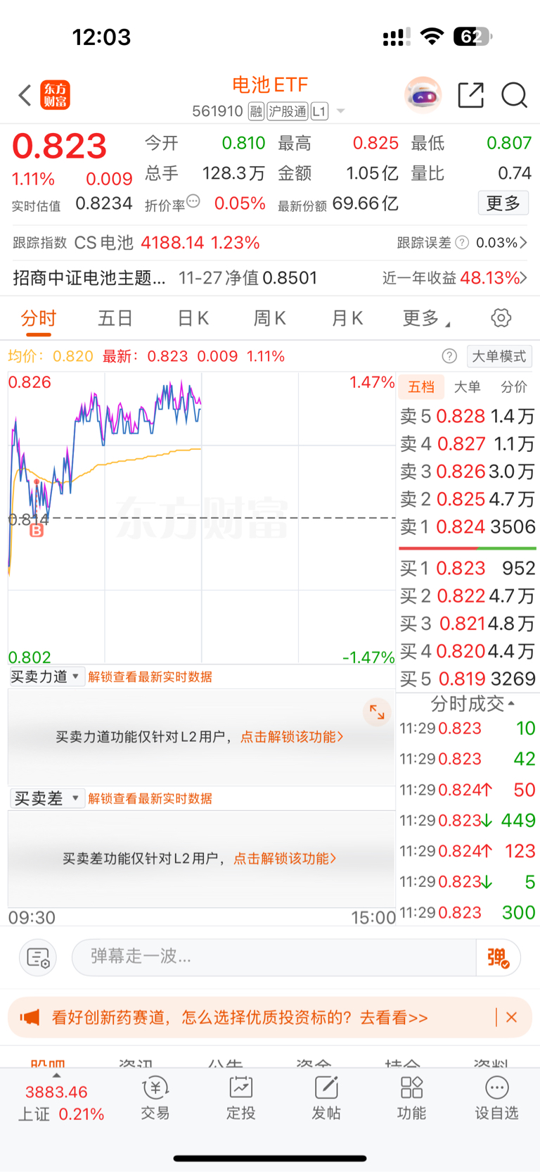 $电池ETF(SH561910)$ 10.32 S中谷上车电池