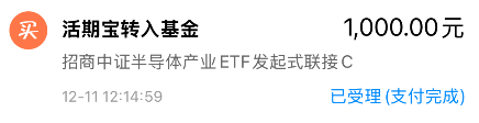 我加仓$招商中证半导体产业ETF发起式联接C(OTCFUND|020465)$1000元,跟踪的半导体指数这会看小跌0.5%左右,依然在5日及多条均线上方波动,趁今天调整我加仓一笔,毕竟目前半导体投资逻辑还是比较顺畅的。