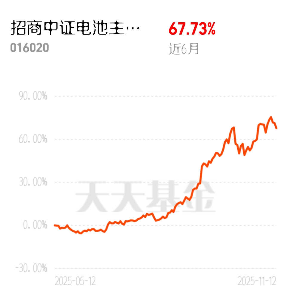 今年储能行业要实现四五十的增长,电动车销量也超预期爆发,电池板块成为市场香饽饽。招商中证电池主题ETF联接C近6个月涨了67.73%,今日跟着板块走高,行业明年预计增长25%-30%,估值合理,中长线持有很放心。