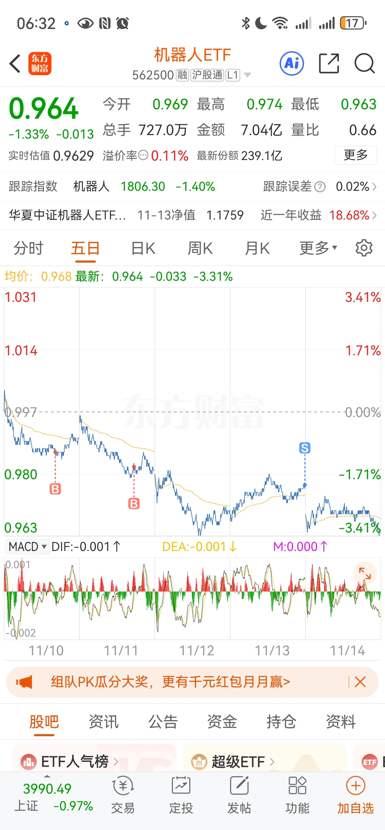 $机器人ETF(SH562500)$ 不想补了,昨天卖了一半,看你再跌到几时