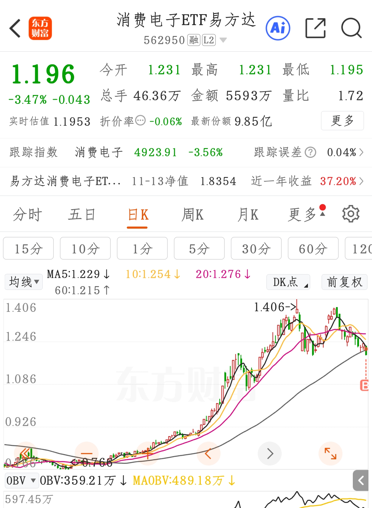 $消费电子ETF易方达(SH562950)$ 今天买一手,让我看看能跌多久