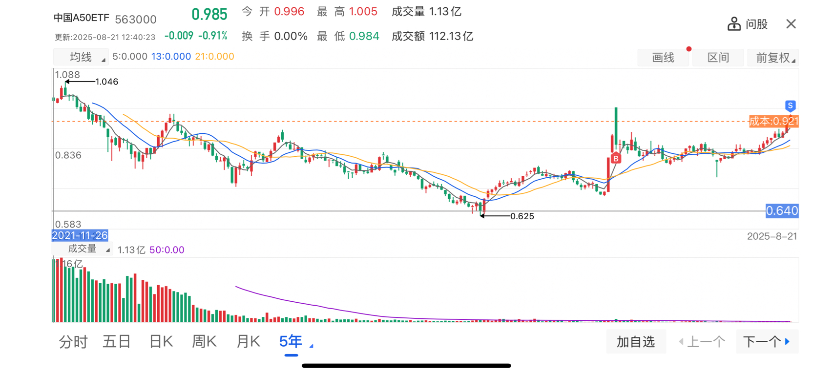 $中国A50ETF(SH563000)$ 在广发那边认购的,感谢主力,今天终于解套啦
