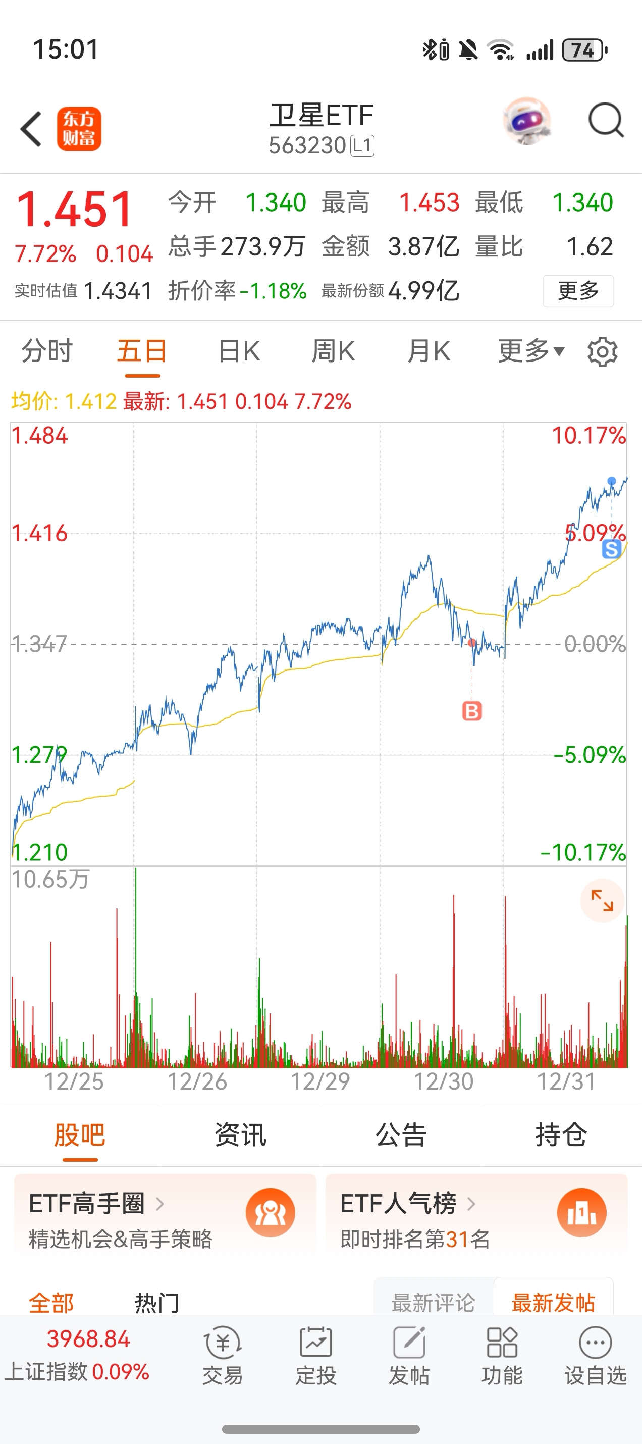 $卫星ETF(SH563230)$ 一天都拿不住