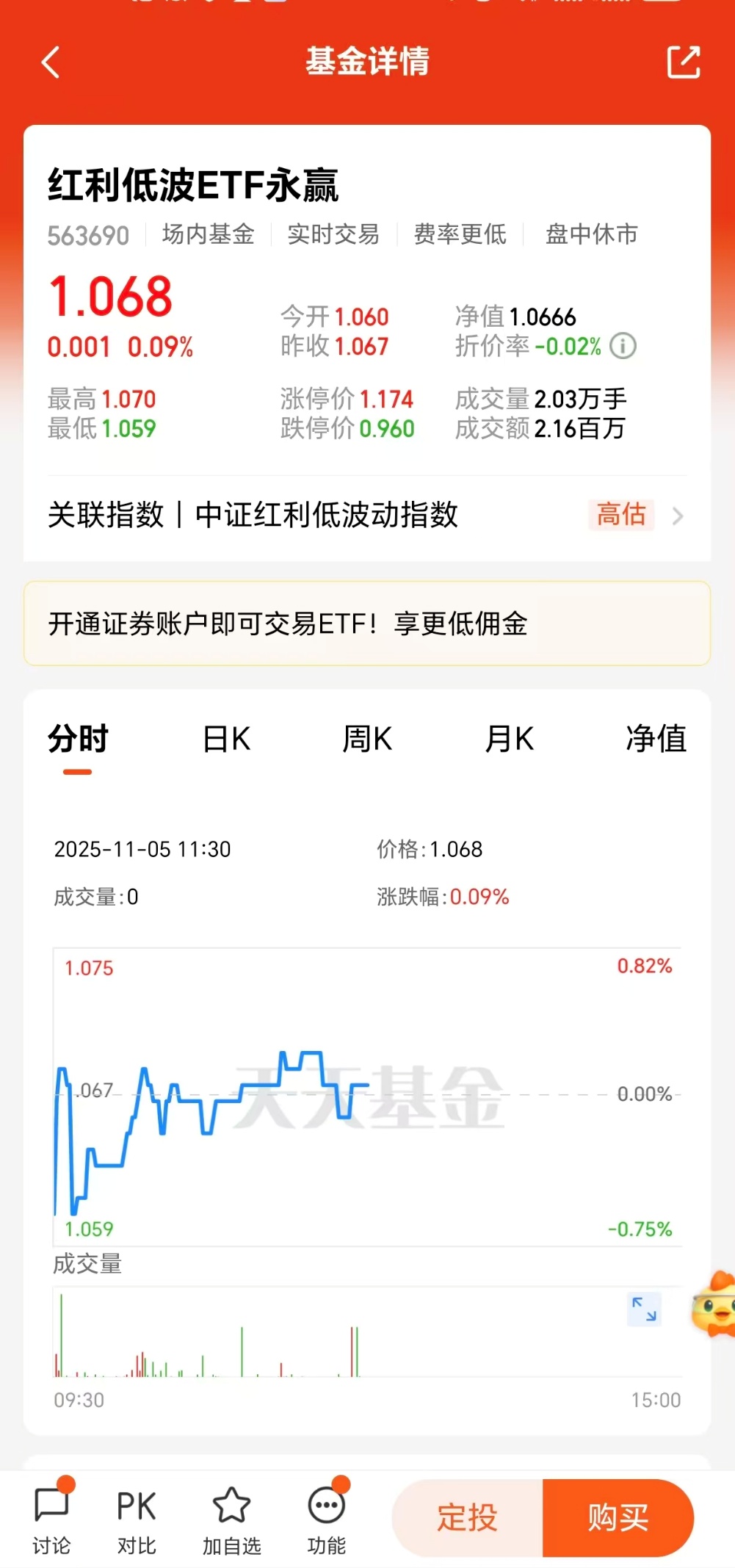 从长周期来看,红利板块在低利率时期更具配置价值。近期买的红利低波ETF永赢就挺不错的,身边不少做投资的朋友也跟着布局了。毕竟现在大家投资越来越理性,不再执着于追涨杀跌,反而更看重“稳稳的幸福”—既要能在市场震荡时少亏点,又要能靠分红拿到实实在在的收益,而红利低波策略正好精准踩中了这个需求点。