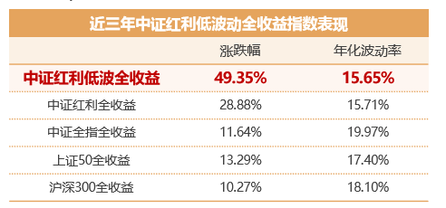 从指数的业绩表现来看,这个策略的有效性已经得到了充分验证。数据显示,中证红利低波指数近三年涨幅高达49.35%,而年化波动率只有15.65%,长期走势呈现出明显的稳中有升的趋势。对比其他市场主流红利指数和宽基指数,它的表现也毫不逊色——不仅收益率更高,而且波动率更低,夏普比率(衡量风险调整后收益的指标)更优,这意味着投资者用更低的风险换来了更高的回报。