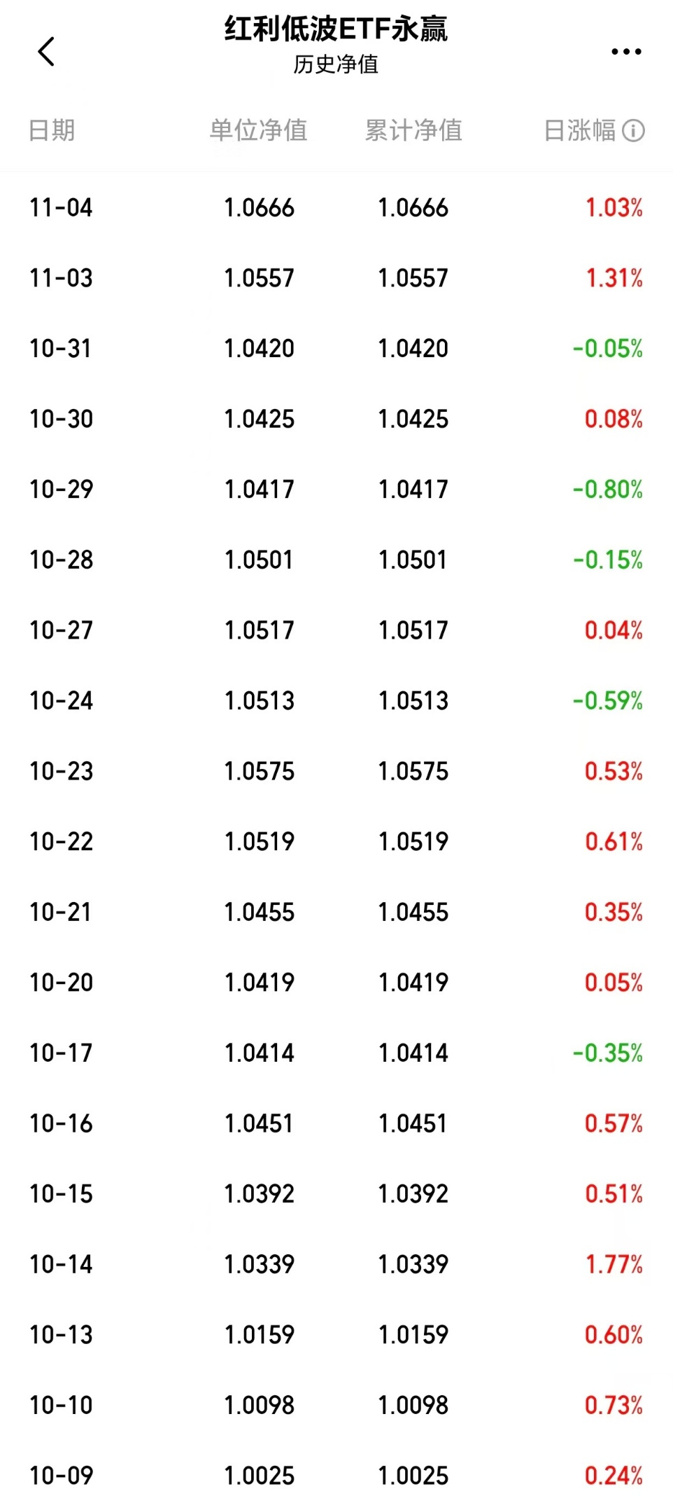 今年四季度或成为红利股低位区间布局、获取超额收益的关键时点之一。红利低波ETF永赢紧密跟踪中证红利低波动指数,采用双重防御+长期增值的底层设计,通过高分红+低波动双因子过滤,构建兼具稳定+成长的组合,是当下震荡市的首选,近期表现也很不错,成立以来的19天里有14天里都是上涨的。