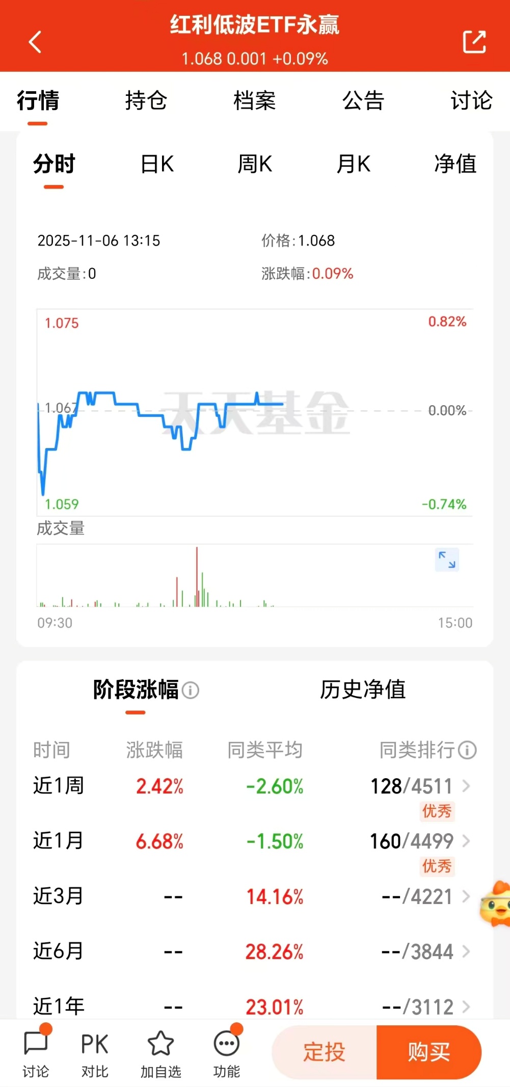 在当前市场环境下配置红利资产胜率相对较高。我自己也悄悄关注了这只低波ETF永赢,它紧密跟踪中证红利低波动指数,采用双重防御+长期增值的底层设计,通过高分红+低波动双因子过滤,构建兼具稳定+成长的组合,是震荡市下的首选,今天也继续上涨。