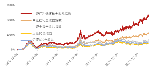 估值方面,当前中证红利低波指数正处于明显的估值洼地。数据显示,指数当前的PB(LF)为0.85倍,位于基日以来46%的分位,这个估值水平不仅远低于自身的历史均值,而且对比全球同类指数也具有明显优势。低估值意味着投资安全边际高,就算市场继续震荡,指数的下跌空间也非常有限。而从股息率来看,指数当前股息率达到4.21%,远超中证全指、上证50、沪深300等主流宽基指数,在低利率环境下,这样的高股息率不仅能为投资者提供稳定的现金分红,而且还能通过分红再投资实现复利增长,长期收益非常可观。