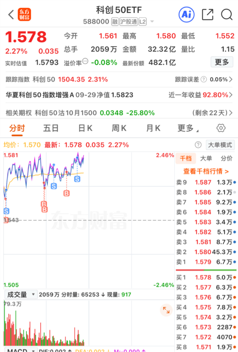 $科创50ETF(SH588000)$ 上午小赚600元,还是比较不错的,下午最多涨到1.20,高点大概在85附近,1.20以后回落到尾盘,但也不要慌张,尾盘也是收红,大概在65附近,节后第一天继续红,第二天阴,大家都学废了嘛?