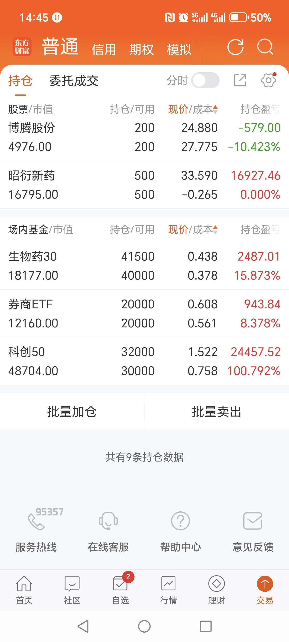 $科创50ETF(SH588000)$ 我还不信你能跌到我的成本线,有能耐套我30个点。