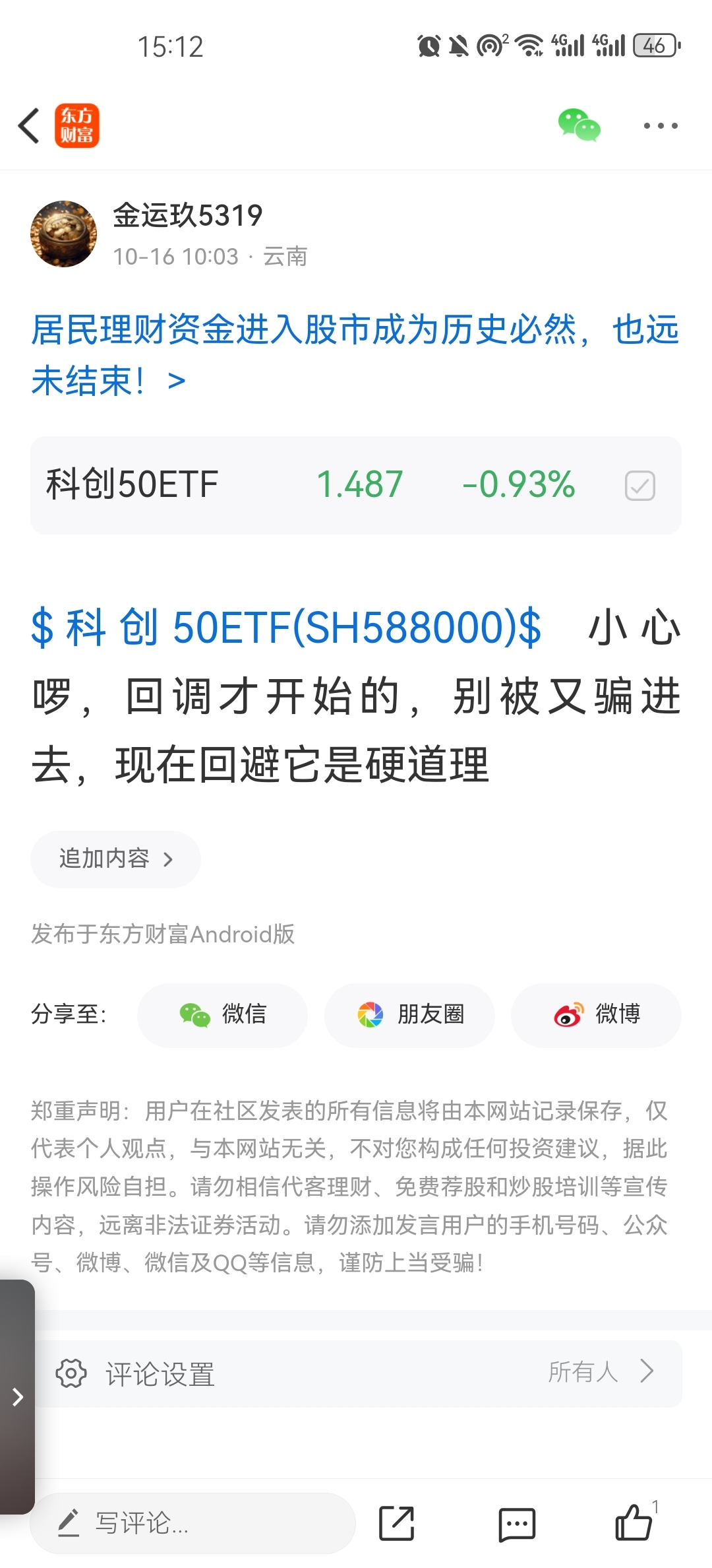 $科创50ETF(SH588000)$ 早上拉高提示不要被骗进去,不是看它,而是指数里它调整的最晚,反弹的力度最弱,这已经说明短线回调还没完成的,连短线反弹迹象都还未出现的