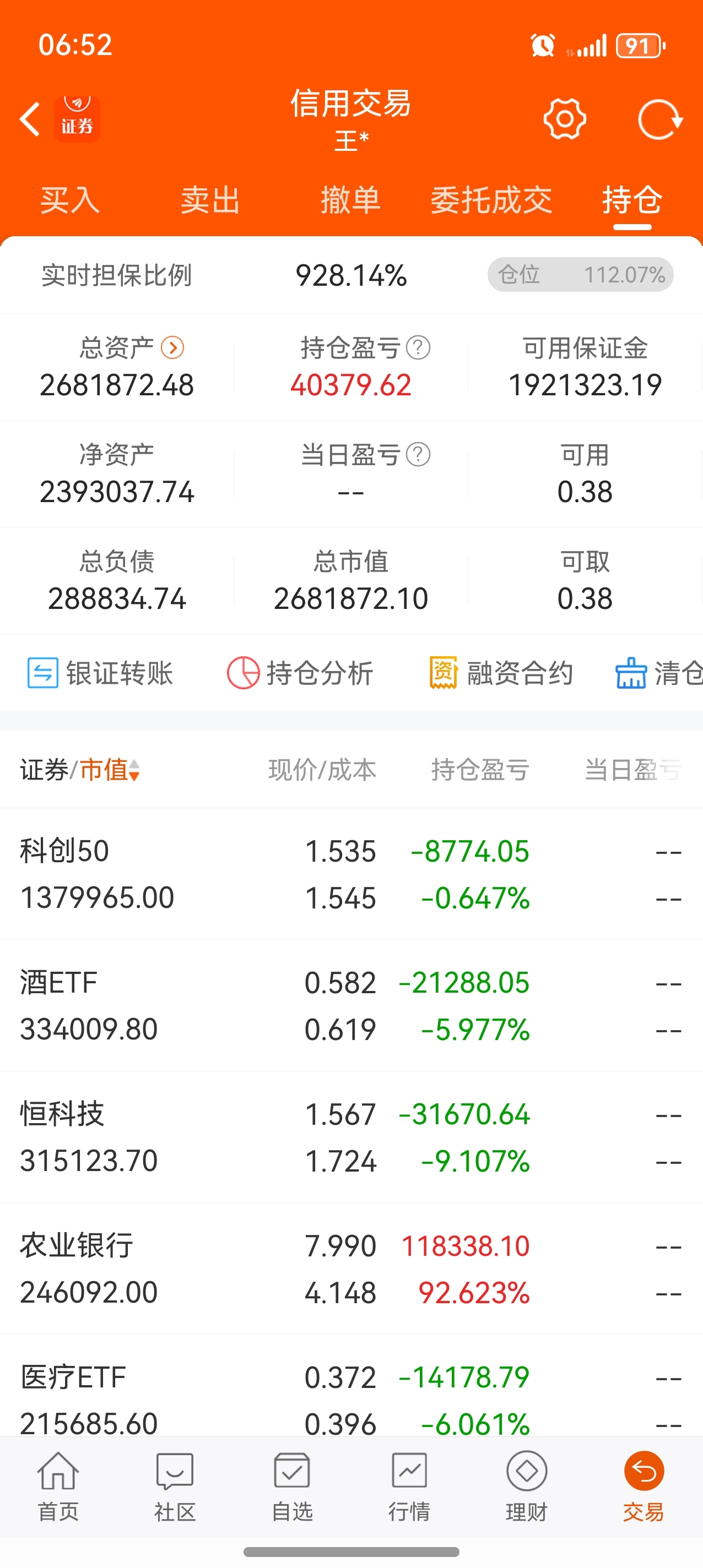 可用保证金太多,要拿出去年9.24行情的魄力,加大杠杆力度,加大投资仓位!9.24时候,净资产206万,总仓位438万!虽然点位已较高,未来三年我觉得中国股市还有新高!