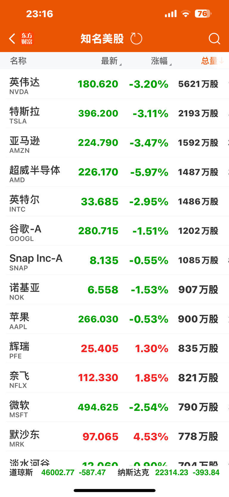 美股科技沾边的全部下跌