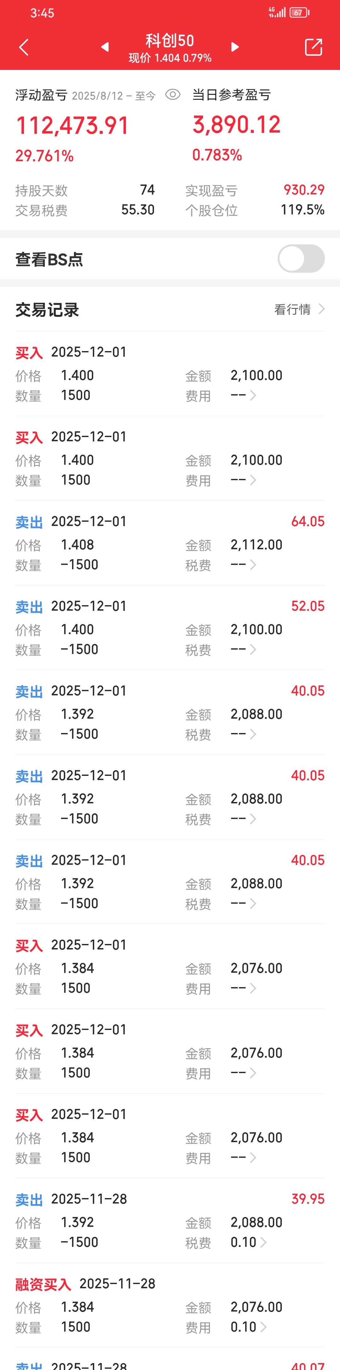 12月1日,底仓没变,踢出来了48,扣0.8的费用