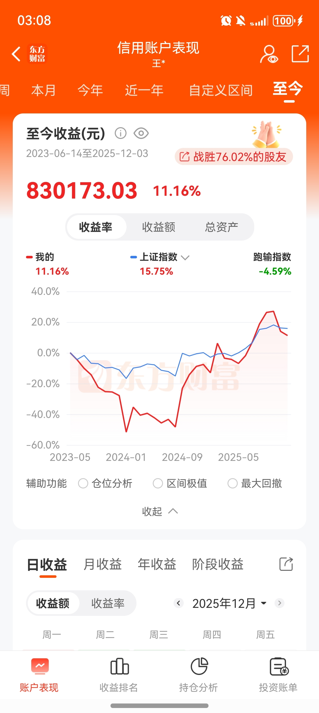 第1516个投资日,今日亏损3.5万,累计盈利83万!