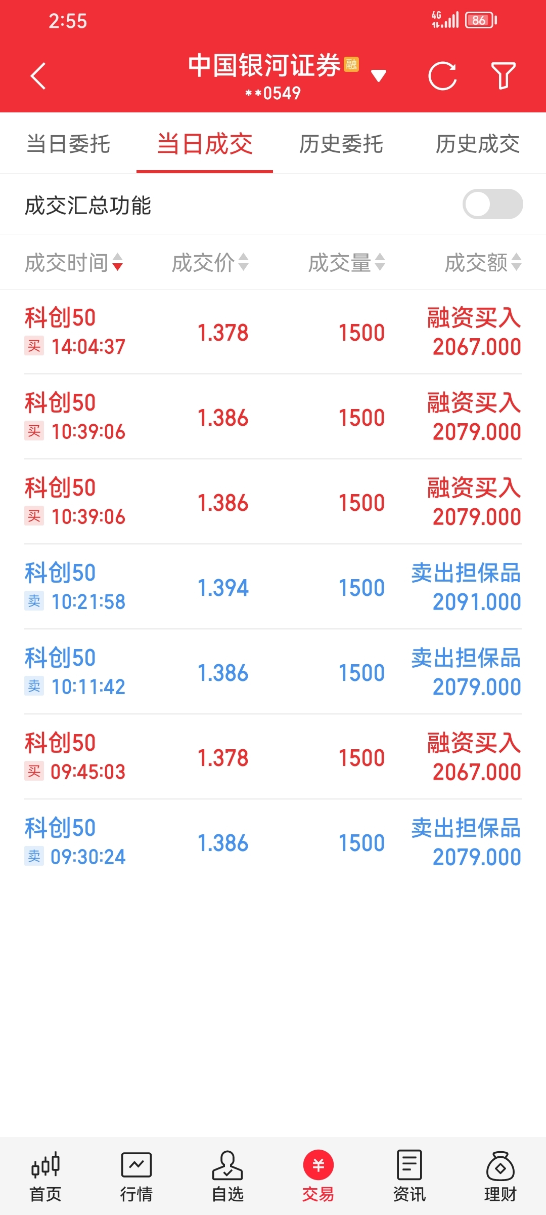 2025.12.19日,今天买入四次,卖出三次,价差36块,扣七毛的费用,在1.394卖出后,当时的5天线是1.385元,就在1.386元多买了1500股,今天套着了,就挂了一个条件单在1.394的时候触发,卖出去,今日持仓372800股,成本1.07元