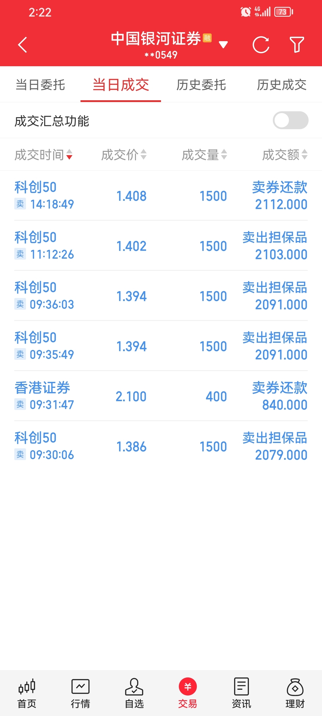 2025.12.22日,今天净卖出7500股,在1.378元买入的6000股,都卖出去了,本来计划中的最后一单是在1.41元卖出1500股,上午的最高价是1.409元,下午在2.20分的时候看到1.409压单40万,1.41元压单50万股,5分钟的macd指标有顶部背离的意思,撤掉1.41的单子,在1.408元卖出了,跟原来的网格接上了,网格操作的下限提高到1.39元,在1.378元买入的6000股,加上后来的网格,大概卖出了10次,利润大概在192块钱,大概要扣3块钱的费用以及6块钱的利息,净利润应该在180块钱上方
