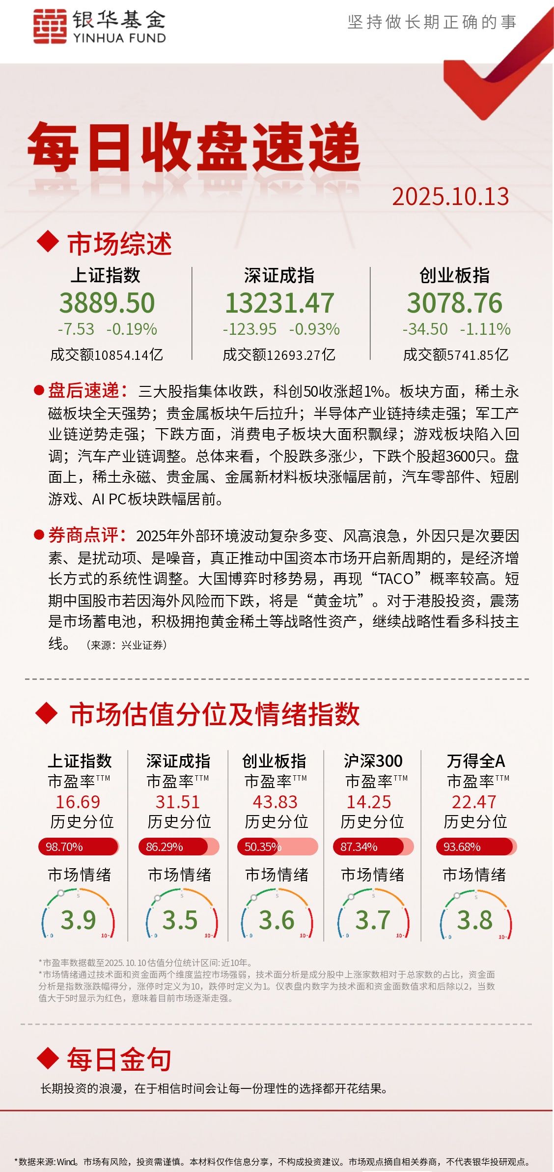 每日收盘速递 | 2025.10.13 三大股指集体收跌,科创50收涨超1%