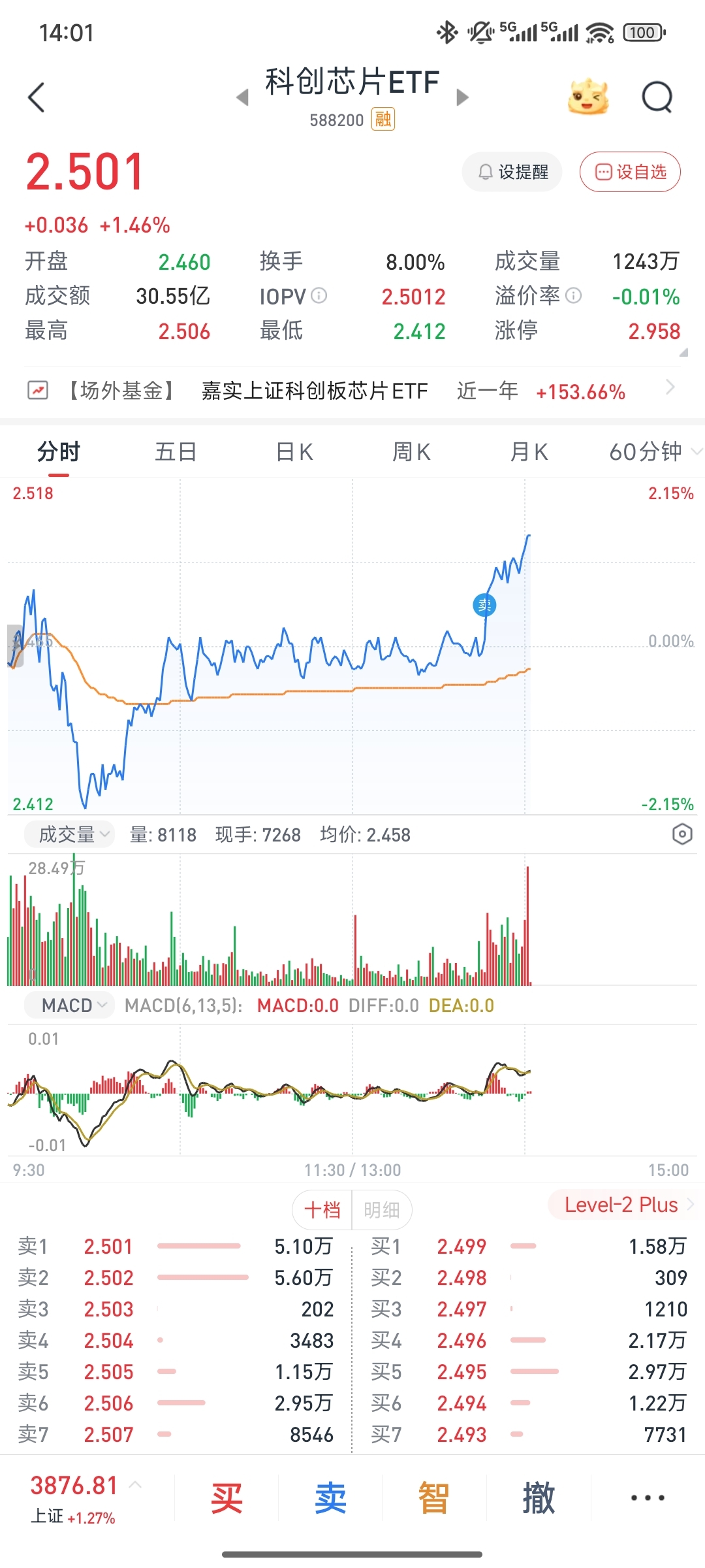 $科创芯片ETF(SH588200)$ 多亏我卖了,一卖就拉。
