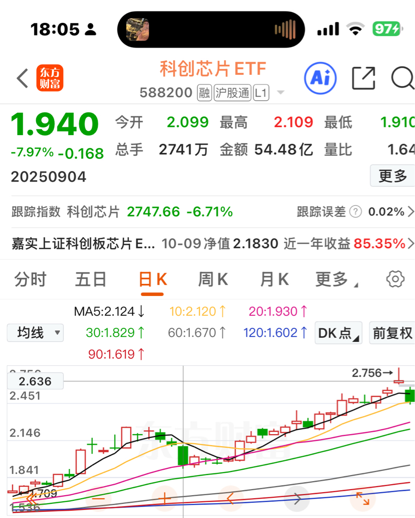 $科创芯片ETF(SH588200)$ 快看看9月4号行情一模一样,大阴后两天反转。继续格局。