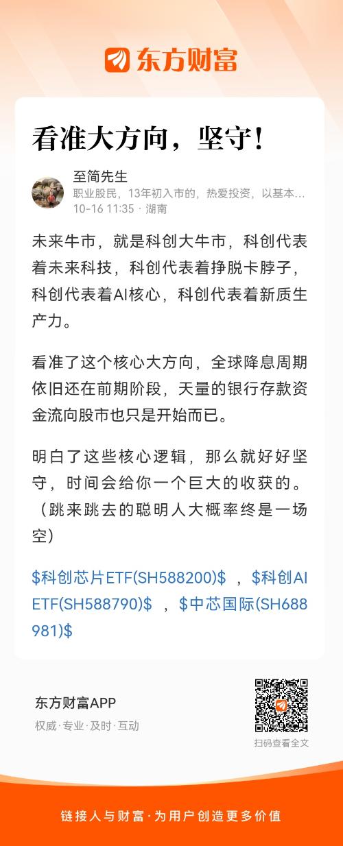 未来牛市,就是科创大牛市,科创代表着未来科技,科创代表着挣脱卡脖子,科创代表着AI核心,科创代表着新质生产力。