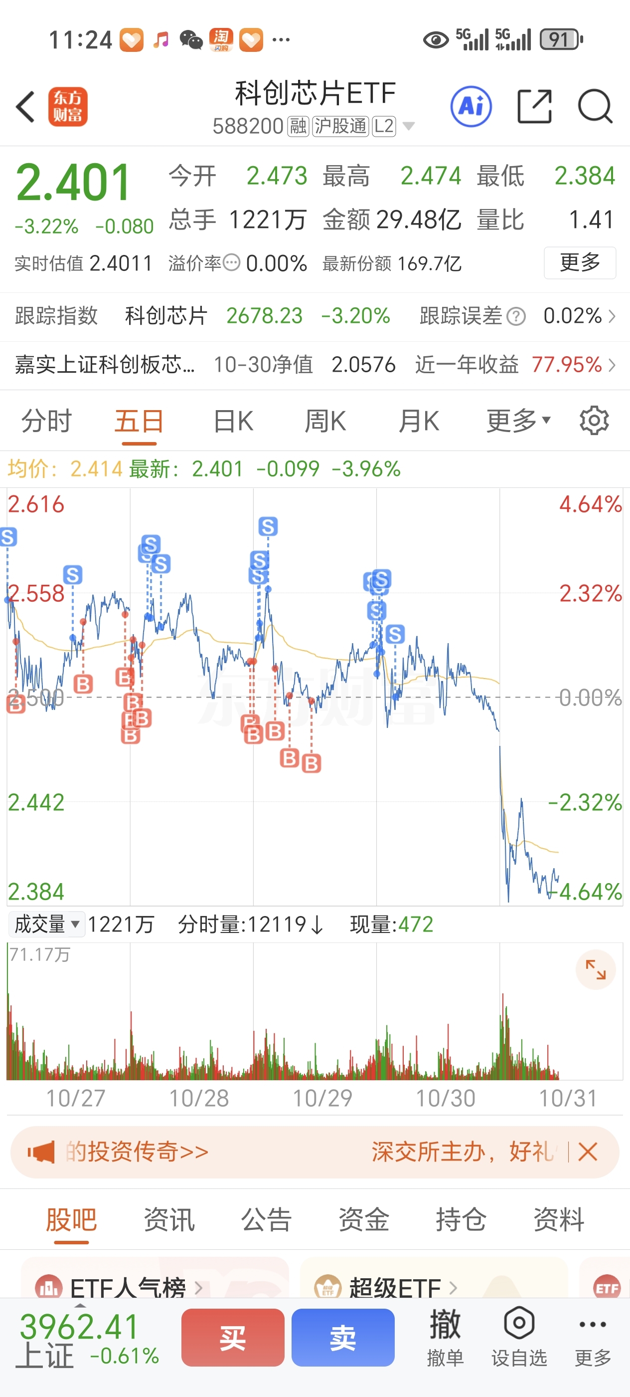 $科创芯片ETF(SH588200)$ 还剩下几百股,这个位置看起来有吸引力了,下个月再看要不要回来