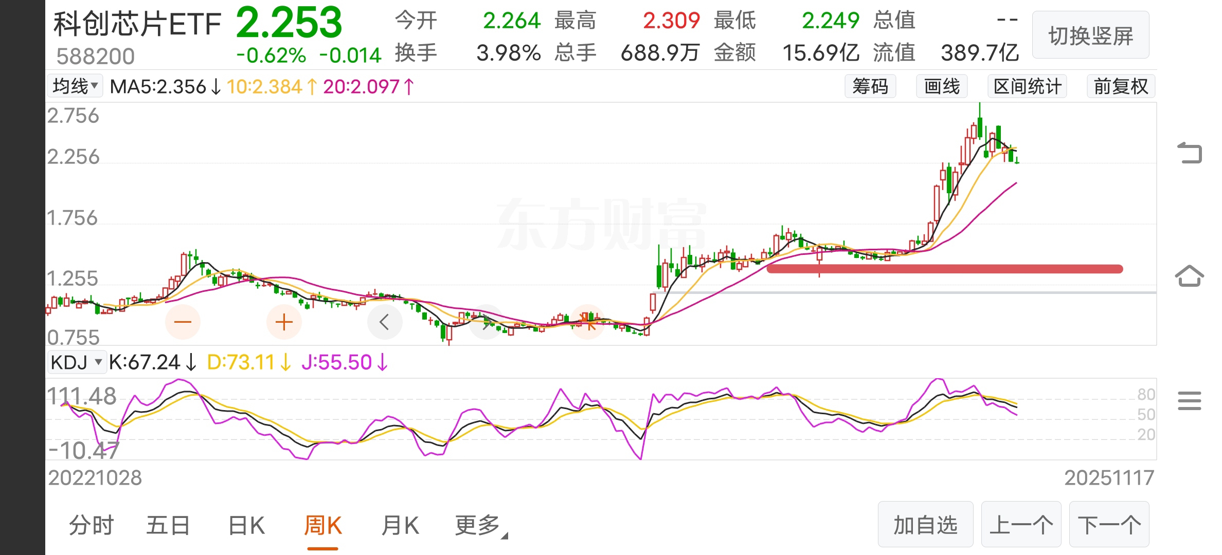 $科创芯片ETF(SH588200)$ 周线强支撑1.5附近 最少2以下才可以慢慢建仓
