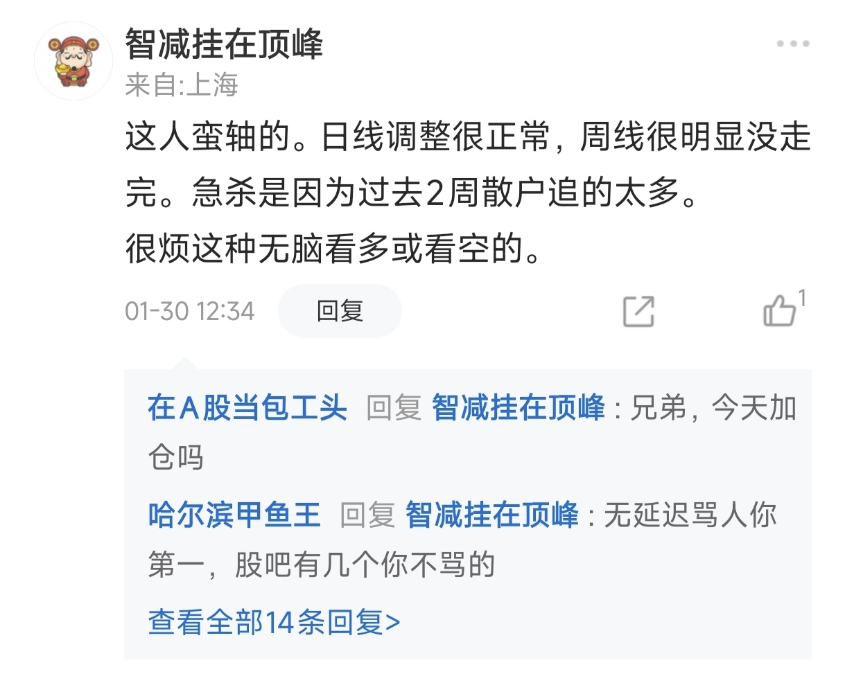 智减挂在顶峰不是骂别人轴吗,都周一了,你的周线还没走完吗?...