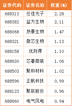 科创板关联个股:仕佳光子、益方生物、热景生物、微芯生物、优刻得、芯碁微装、聚和材料、正帆科技、聚辰股份、电气风电。