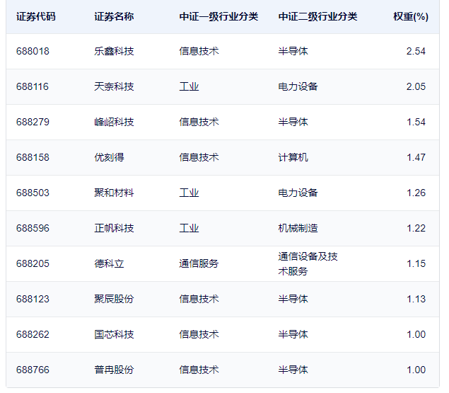 科创200ETF指数关联个股: