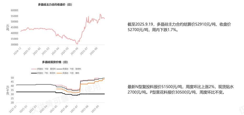 多晶硅价格:期货周内震荡下跌1.7%,现货价格环比上涨2%