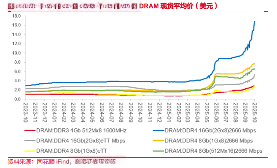 民生证券分析指出,原厂将先进制程产能集中转向HBM和DDR5,导致DDR4等成熟制程供应急剧收缩。2025年第三季度,DRAM价格同比上涨171.8%,而第四季度一般型DRAM价格环比涨幅预期从8%-13%上修至18%-23%,NAND Flash合约价全面上涨5%-10%。更值得关注的是,存储原厂扩产计划滞后,2026年全球DRAM及NAND产能增幅有限,周期韧性或将延续至2026年下半年。