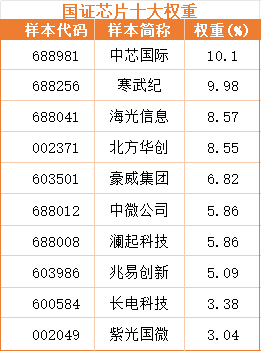 半导体板块关联个股:中芯国际、海光信息、寒武纪-U 、北方华创、韦尔股份、中微公司、澜起科技、兆易创新、长电科技、紫光国微。