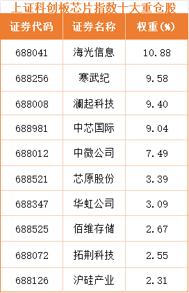 科创板半导体板块关联个股:海光信息、寒武纪、澜起科技、中芯国际、中微公司、芯原股份、华虹公司、佰维存储、拓荆科技、沪硅产业。