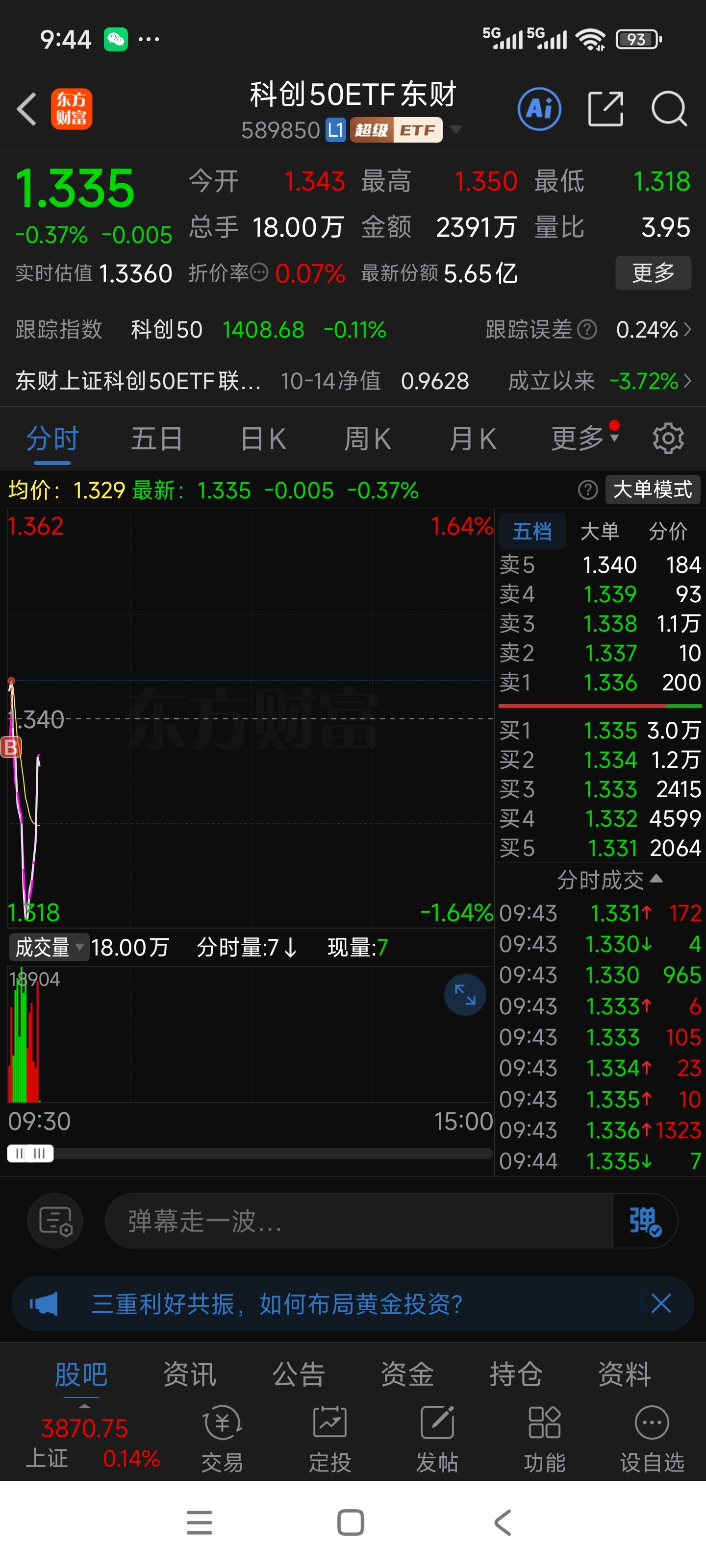 $科创50ETF东财(SH589850)$ 想哭,一来就跌