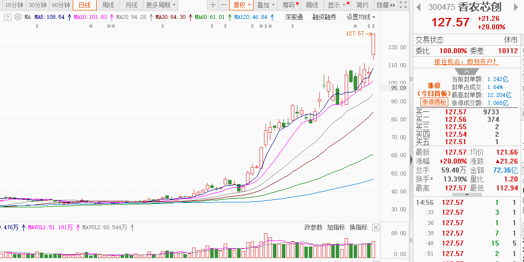 香农芯创:DRAM内存,催化是三星海力士四季度涨价30%,导致美股存储芯片龙头集体大涨,香浓目前是A股存储的趋势龙头股之一,股价近期高位横盘蓄力,但上周五再次跳空高开加速向上突破,首板涨停,封单1.2个多亿,上涨趋势得到加强,放量涨停,以后继续走主升浪拉升预期。