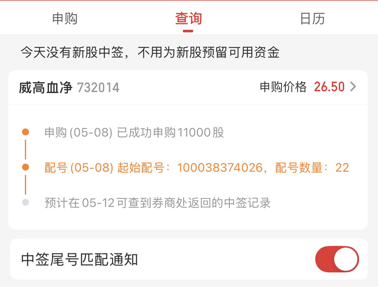 $威高申购(SH732014)$ 中了踢我