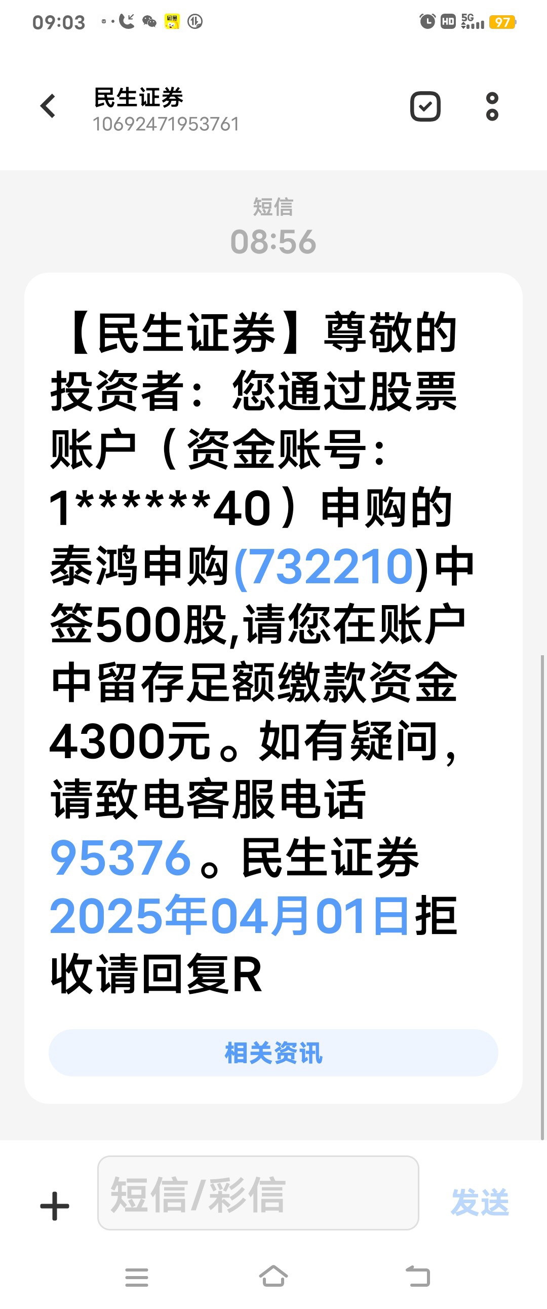 $泰鸿申购(SH732210)$ 2025年第一签
