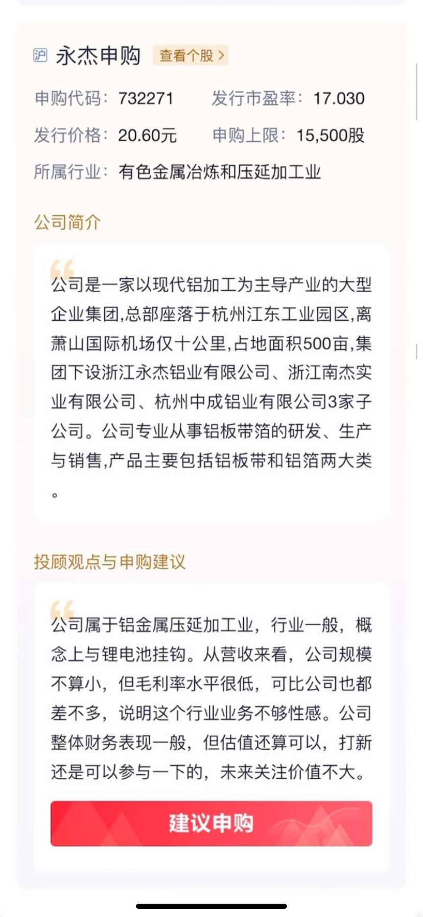 $永杰申购(SH732271)$ 这中签了能赚多少?