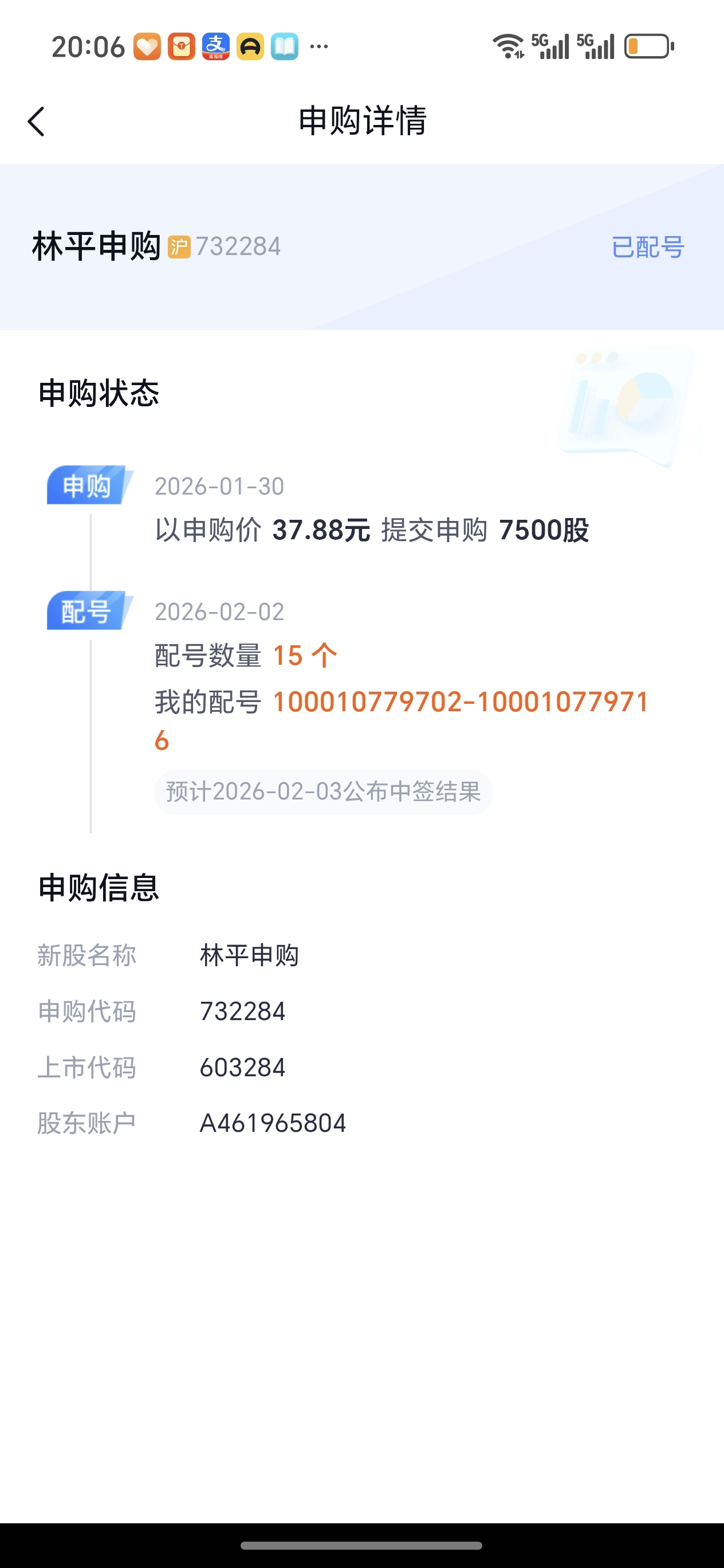 $林平申购(SH732284)$ 周二有结果吗