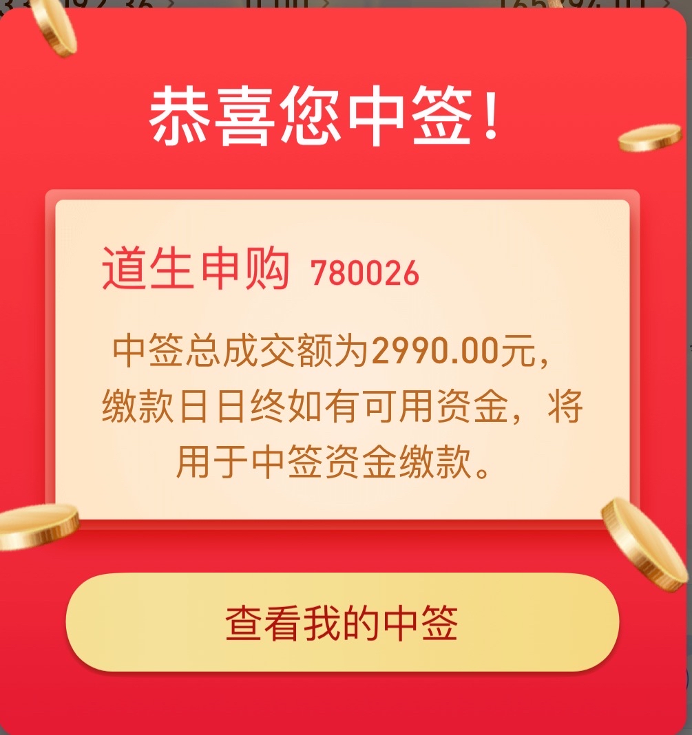$道生申购(SH780026)$ 曾经一年中了10多只票,N多年没中签了,终于又开张了
