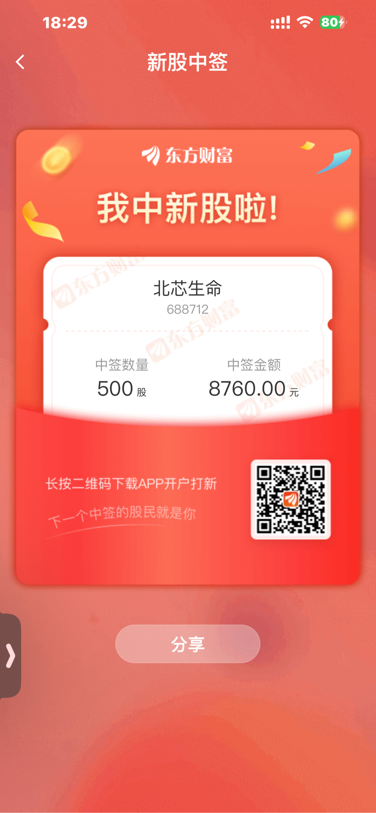 $北芯申购(SH787712)$ 我又中新股了,每年中一个,25年也是1个月中了一个,赚了2万几,难道是开运月,再接再厉$北芯生命(SH688712)$